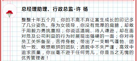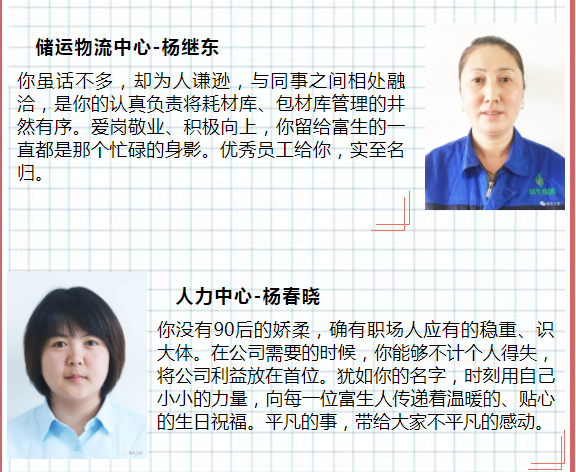 親愛的小伙伴們大家中午好!再一次向獲獎的先進(jìn)表示祝賀和感謝。你們中既有愛崗敬業(yè)、無私奉獻(xiàn)的老員工,又有激情四射、充滿活力的后起之秀;你們中有管理創(chuàng)新、溝通協(xié)調(diào)的高手,又有工藝改造、技術(shù)攻關(guān)的大師;既有沖鋒在前的業(yè)務(wù)人員,又有在平凡的工作崗位上默默付出和奮斗著的一線員工。雖然崗位不同、職位有別,但你們都在用自己的實(shí)際行動詮釋著對工作的無限熱忱。在這里,我為富生集團(tuán)有你們這些優(yōu)秀的員工感到驕傲和自豪,正是由于你們的優(yōu)秀表現(xiàn),才使得我們在過去的一年取得驕人的成績。2021年是集團(tuán)實(shí)現(xiàn)跨越式發(fā)展的一年,希望大家能夠繼續(xù)做好表率,緊跟公司發(fā)展步伐,提升產(chǎn)品創(chuàng)新、快速打開全國營銷市場,優(yōu)質(zhì)服務(wù)客戶。我也相信,新的一年,公司全員能夠快速提升凝聚力、團(tuán)結(jié)力、向心力、戰(zhàn)斗力,合力并舉,共創(chuàng)佳績!最后在新春佳績來臨之際,預(yù)祝大家新春快樂,吉祥如意!